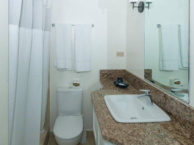 El apartahotel se encuentra en St. Lawrence Gap, en la costa sur de Barbados. El animado centro de Bridgetown, con clubes nocturnos, restaurantes elegantes y magníficas tiendas, está a unos 20 minutos andando. El mercado de pescado está a 3,5 km.Este complejo familiar le ofrece un ambiente encantador y 61 apartamentos, que se distribuyen en 3 plantas. En el hall de entrada hay una recepción abierta las 24 horas, con caja fuerte, servicio de cambio de divisa, ascensor y guardarropa. Además, también cuenta con cafetería, quiosco, peluquería, casino, sala de juegos, sala de conferencias, conexión a Internet y restaurante. También se tiene en cuenta a los niños, para los cuales hay un club infantil. Además, hay un aparcamiento y un garaje disponibles.Los amplios apartamentos, de estilo caribeño, disponen de unas instalaciones excelentes. Todas las viviendas cuentan con secador de pelo, teléfono de línea directa, TV por cable, conexión a Internet, radio, caja fuerte de alquiler, cama doble o extra grande. También tienen cocina con horno, microondas, set de plancha, balcón o terraza con vistas impresionantes al mar Caribe. Hay 28 apartamentos adaptados para personas minusválidas en un edificio nuevo con ascensor. Cuenta con ventiladores de techo y de pie para mantener fresca la habitacion.En el exterior tiene a su disposición una piscina, un bar de aperitivos, terraza para tomar el sol y tumbonas. El personal de recepción organiza actividades deportivas en la playa, excursiones por la isla, torneos de vela, espectáculos culinarios, actividades deportivas en la playa, tenis, golf y muchas otras actividades de tiempo libre. También se alquilan coches. Hay un hipódromo a 1 km.El desayuno y el almuerzo se ofrecen en forma de bufet. Además, a la hora de comer y de cenar puede elegir a la carta o un menú. Los huéspedes tienen la posibilidad de encargar comida dietética y platos especiales.