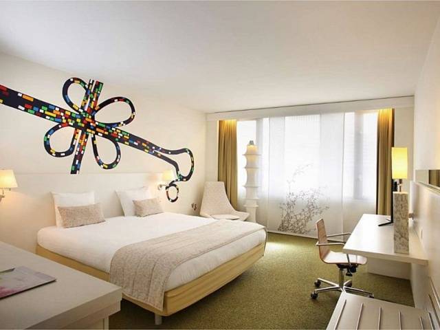 El NHow Brussels Bloom es un hotel exclusivo de temática artística que cuenta con una ubicación muy práctica en la animada zona urbana de Botanique. Su entorno creativo y moderno, decorado con obras de artistas de todo el mundo, es un punto de interés turístico en sí mismo. A solo 15 minutos del aeropuerto de Bruselas y la estación de Brussels Midi, también está bien comunicado por transporte público y se encuentra a 15 minutos a pie del centro histórico. Las 305 habitaciones del hotel están decoradas con frescos pintados a mano creados por 287 artistas diferentes. Las habitaciones panorámicas de los pisos superiores ofrecen unas vistas fantásticas de la ciudad. El hotel cuenta con su propia camioneta de gofres en el restaurante OO!, donde puedes disfrutar de un abundante desayuno buffet. Si te apetece beber algo, el maestro coctelero del bar Smoods puede prepararte el cóctel que quieras.