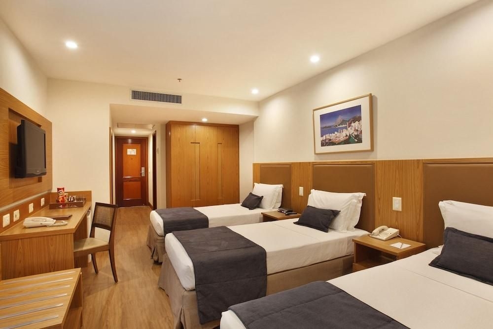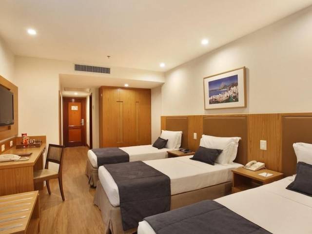 El Windsor Excelsior Copacabana, en Río de Janeiro, está localizado en la Playa de Copacabana, a 3,5 km de la Laguna Rodrigo de Freitas. El Aeropuerto Santos Dumont queda a 6 km del local. La cobertura de la propiedad cuenta con piscina, sauna y academia, además de vista panorámica.El desayuno, servido en el restaurante, ofrece opciones de frutas, jugos, panes, bolos y bebidas calientes. También es posible saborear platos de la culinaria nacional e internacional en el almuerzo o cena.Las habitaciones tienen aire acondicionado, TV LCD por cable y minibar. El Internet Wi-Fi está disponible gratuitamente.Las instalaciones incluyen un centro de convenciones, centro de negocios, bar y restaurante. El hotel ofrece servicio de playa y servicio de habitación 24h.El Windsor Excelsior se encuentra a 4 km del Pan de Azúcar y la estatua del Cristo Redentor. El Aeropuerto Internacional de Río de Janeiro - Galeao está a 18 km.