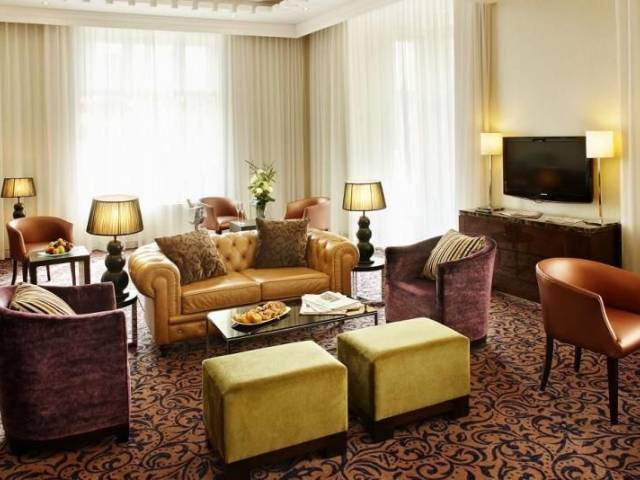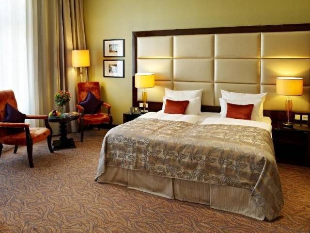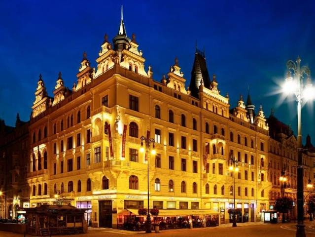 El hotel The Kings Court ofrece un alojamiento de lujo con hermosas vistas del centro histórico de la ciudad de Praga, incluyendo una vista a la famosa Casa Municipal.