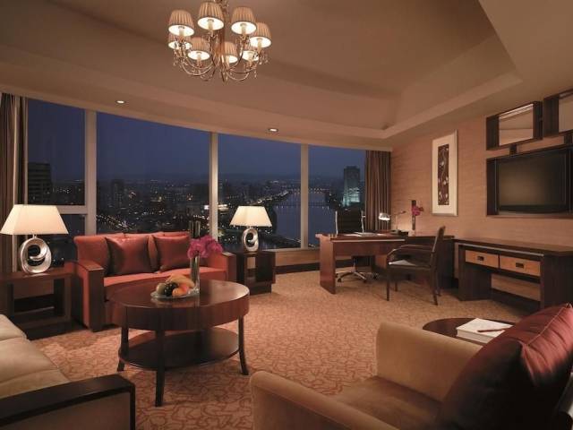 Situado a apenas 300 m del centro de la ciudad, el hotel queda aproximadamente a 20 minutos en coche del aeropuerto internacional de Ningbo Lishe, donde se encuentran taxis fácilmente.Las instalaciones para reuniones y banquetes del hotel ofrecen un gran salón de baile de 2000 m², el mayor de la ciudad, complementado por otras salas de eventos para diferentes acontecimientos. Las instalaciones del hotel, construido en 2009, incluyen centro de negocios, vestíbulo con servicio de salida y recepción 24 horas, caja fuerte, servicio de cambio de divisas, guardarropa y ascensor. El alojamiento está totalmente climatizado y también dispone de quiosco de periódicos, salón de peluquería, cafetería, bar, restaurante, conexión a Internet WiFi y servicio de habitaciones y de lavandería (ambos por un suplemento). Consta de 563 habitaciones.El hotel comprende habitaciones y suites espaciosas y bien equipadas. Todas ellas son amplias, elegantes y están bien amuebladas. Miden un mínimo de 45 m² y hay suites con una superficie desde 90 m² hasta los 225 m² de la Presidential suite, con lo que constituyen algunas de las suites más amplias de la ciudad de Ningbo. Los cuartos de baño privados cuentan con ducha, bañera y secador pelo, mientras que las habitaciones disponen de camas dobles o extra grandes, teléfono de línea directa, TV vía satélite/por cable, radio y conexión a Internet, además de una cocina/pequeña cocina equipada con minibar, nevera pequeña, hornillos, microondas y cafetera/tetera. Cada habitación cuenta también con caja fuerte, lavadora, set de plancha, aire acondicionado regulable y terraza.