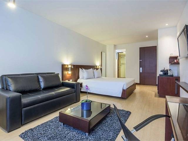 El hotel NH Bogotá Urban 93 Royal se encuentra ubicado cerca del Parque de la 93, en el distrito Chicó de Bogotá, una zona conocida por sus instalaciones empresariales y de ocio. Está a 35 minutos del centro de la ciudad y a 10 minutos de la Zona T, con sus bares, restaurantes y centros comerciales. Las habitaciones son amplias y cómodas, con escritorio y área de estar. Todas ellas tienen ventanas aislantes del ruido y son cómodas y luminosas, con paredes blancas y suelo de madera. Nuestro famoso restaurante tiene una terraza al aire libre donde puedes sentarte a comer o beber algo tranquilamente. También ofrecemos otros servicios a nuestros clientes, como por ejemplo servicio de transporte a y desde el aeropuerto. *Los clientes extranjeros sin sello de turista en el pasaporte deben abonar el 16% IVA en el hotel.
