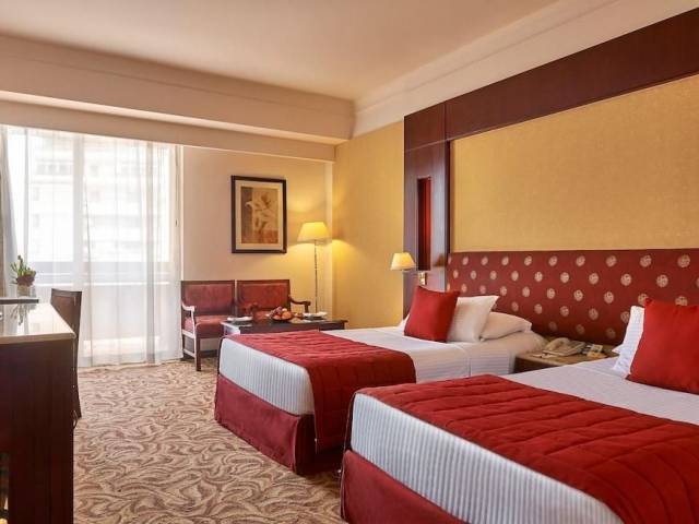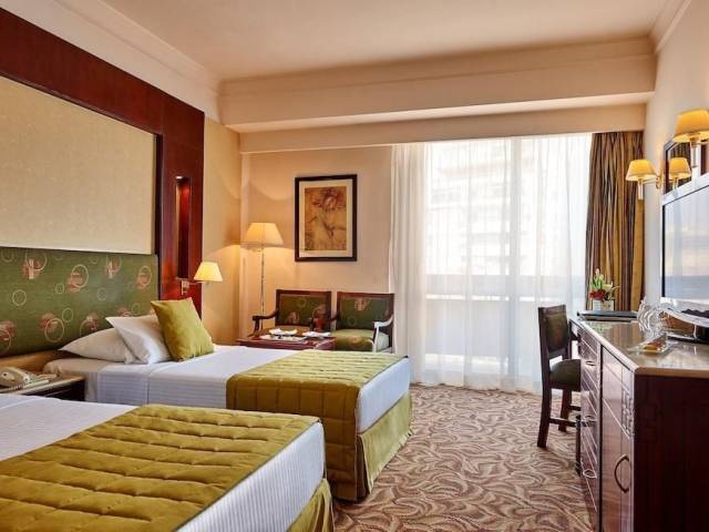 El hotel está situado en el centro de la ciudad, cerca del río Nilo. A pocos minutos del centro de la ciudad, y del Museo Egipcio, a 15 km de las Pirámides de Sakkara, las Pirámides de Giza y la Esfinge. Las habitaciones que conforman el hotel son amplias y luminosas. Todas ellas cuentan con baño privado y disponen de diferentes amenitites que harán que se sienta como en casa: secador de pelo, teléfono, termostato, TV, conexión Wi-Fi y caja de seguridad, entre otros servicios. Para comer y divertirse, el hotel ofrece una amplia variedad de restaurantes especializados que ofrecen cocina internacional, asiática y oriental. Las instalaciones del hotel incluyen una piscina climatizada al aire libre, un gimnasio, un spa y un centro de negocios completamente equipados. Celebre sus eventos y conferencias en una de las siete salas de reuniones que ofrece el hotel con capacidad de hasta 300 personas. ¡Disfrute de su estancia! *** Los clientes con nacionalidad Egipcia que se alojen en el hotel compartiendo habitación, deben aportar el certificado matrimonial