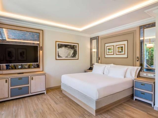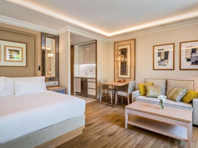 Reserva una de las 94 habitaciones climatizadas, todas equipadas con cocina con frigorífico/congelador grande y horno. La conexión a Internet wifi gratis te permite comunicarte con los tuyos, y en tus ratos libres podrás entretenerte con el televisión LCD de 50 pulgadas con canales por satélite. Entre las comodidades, se incluyen caja fuerte (cabe un portátil), escritorio y teléfono.Aprovecha para cenar en el restaurante Restaurante Serrella, que se especializa en cocina local e internacional. También hay una cafetería, por si te apetece una fabulosa merienda. Pon la guinda en el pastel a un día fantástico con una bebida en el bar o lounge o en el bar junto a la piscina.Tendrás un centro de negocios, tintorería y un servicio de recepción las 24 horas a tu disposición. Este hotel pone a tu disposición 2 salas de reuniones donde celebrar todo tipo de eventos. Se ofrece servicio de traslado desde la estación de trenes de pago y un aparcamiento sin asistencia (de pago).Barcelo La Nucía Hills de La Nucía está a 4 min en coche de Bodegas Enrique Mendoza y a 6 de Terra Natura. Además, este hotel de 5 estrellas se encuentra a 6,3 km de Terra Mítica y a 7,6 km de Playa de Levante.Las distancias se expresan en números redondos. Bodegas Enrique Mendoza: 2,3 km Terra Natura: 4,1 km Jardín con esculturas Klein-Schreuder: 4,2 km Villaitana Golf Course: 4,6 km Estadio municipal Guillermo Amor: 4,7 km Parque de l'Aiguera: 5,2 km Playa de Poniente: 5,6 km Ayuntamiento de Benidorm: 5,8 km Avenida Martínez Alejos: 5,9 km Benidorm Airsoft: 6 km Parque de Elche: 6 km Parque natural de la Sierra Helada: 6 km Iglesia de San Jaime y Santa Ana: 6,1 km Balcón del Mediterráneo: 6,2 km Placa del Castell: 6,2 km