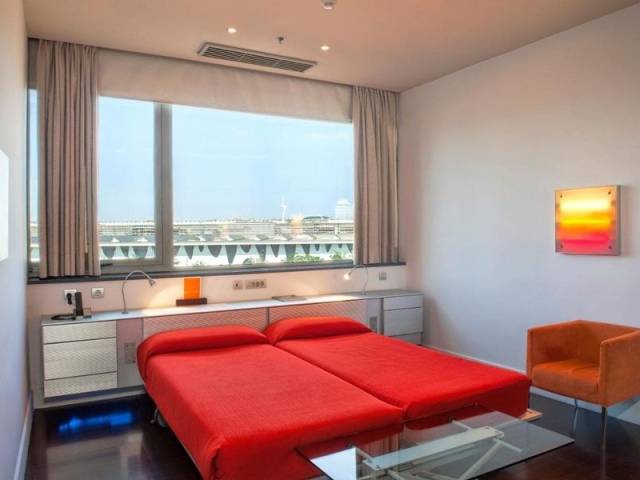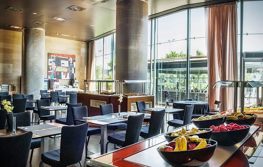 Excelente localización a las puertas del recinto ferial y de convenciones Fira Gran Via, ubicado a sólo 5 km del centro de Barcelona y a tan sólo 10 km del aeropuerto. A 100 metros del Alexandre Hotel Fira Congress, se encuentra la parada de la línea de metro L9, la cual tiene conexión con las dos terminales del Aeroport del Prat, así como con el centro de la ciudad y con el Estadio Camp Nou. Son 160 habitaciones exteriores con fantásticas vistas de la ciudad, equipadas con la más avanzada tecnología, Wifi, minibar y caja fuerte, gratuitos. Es la mejor opción para el alojarse y celebrar reuniones y eventos. Además, ofrece una atractiva oferta en servicios, como un gimnasio, salones multifuncionales y despachos individuales, todo ello con Wifi gratuito. El Narandam, Restaurante and Bar, ubicado en la primera planta y con acceso a la terraza exterior, complementa esta oferta inigualable.