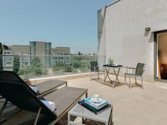 El Hesperia Fira Suites está convenientemente ubicado en el nuevo distrito de negocios de Barcelona y ofrece un alojamiento práctico y moderno para huéspedes que viajan por negocios o vacaciones. Todos los apartamentos están diseñados para ofrecer toda la comodidad, con uno o más dormitorios independientes, sala de estar y cocina americana completamente equipada. Algunos apartamentos incluso cuentan con una relajante terraza exterior con sillones para tomar el sol. El Hesperia Fira Suites ofrece una ubicación muy práctica con respecto a las líneas de transporte público. Se encuentra a pocos pasos de una estación de metro y a pocos minutos del centro de exposiciones Fira de Barcelona, del Hospital de Bellvitge, del Instituto de Oncología (ICO) y de la Universidad de Barcelona. El hotel ofrece fácil acceso al centro de la ciudad y al aeropuerto de Barcelona. Además cuenta con conexión Wi-Fi a Internet gratuita en todo el hotel.