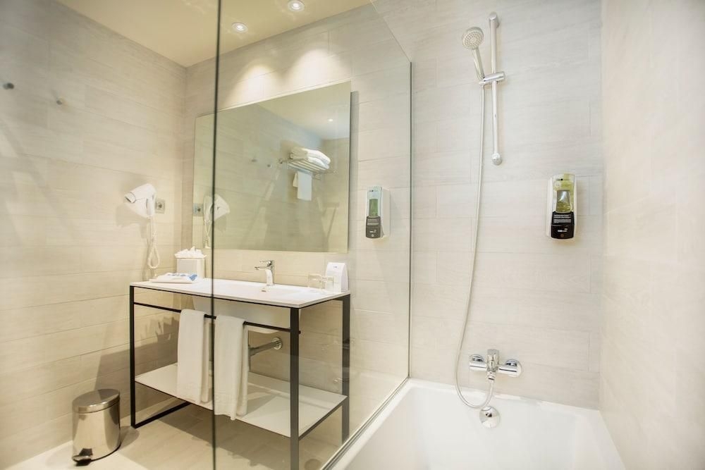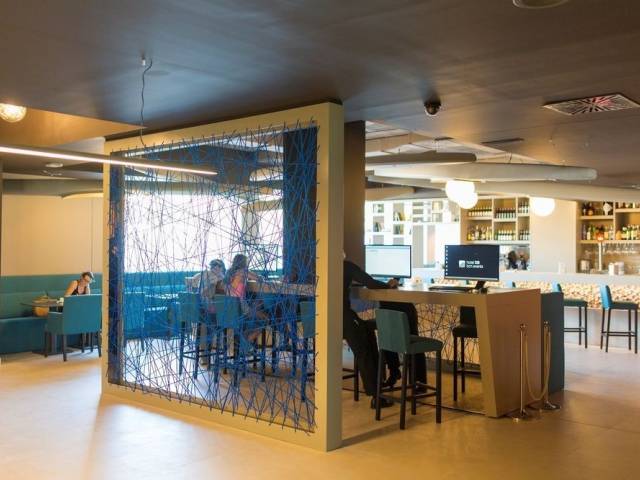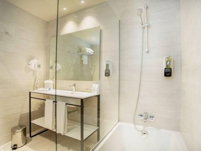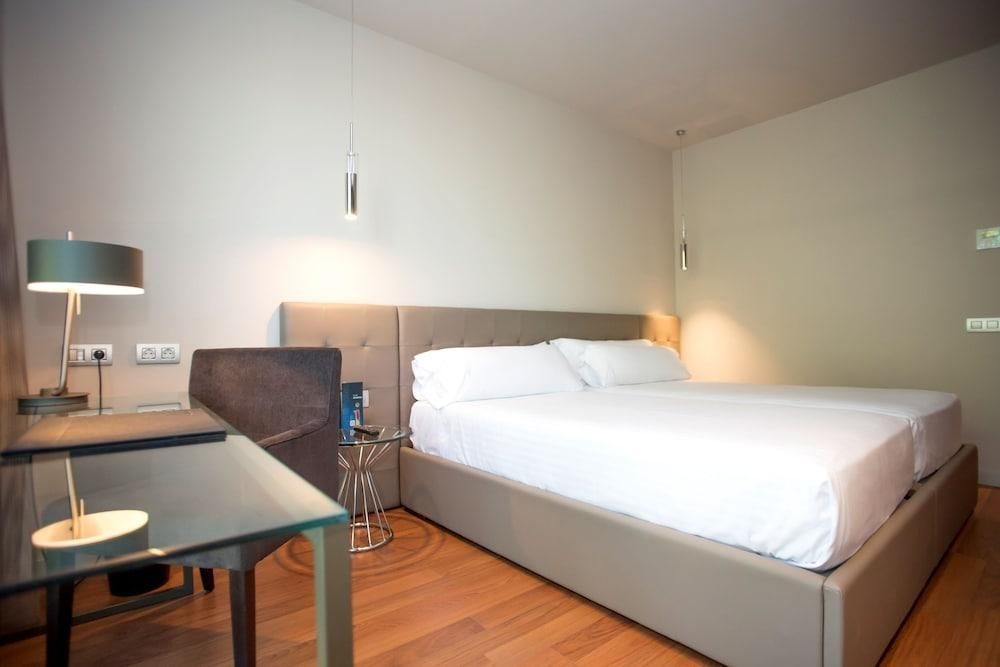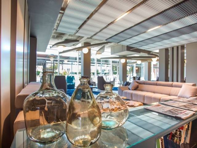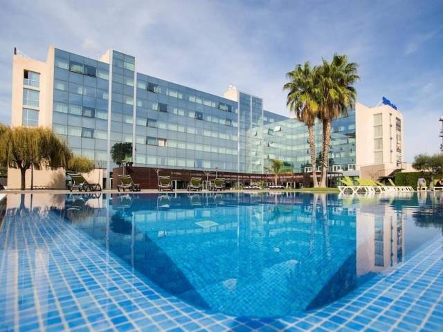 Este hotel está situado al sur de Barcelona, el centro se encuentra a 15 kilómetros. En los alrededores podrá encontrar numerosas tiendas y comercios, restaurantes y bares. La playa se encuentra a 1500 metros y hay una estación de autobuses a 10 minutos. El aeropuerto de Barcelona está a una distancia de 7 kilómetros.Este elegante hotel, construido en el año 2005, tiene cinco plantas en las que se reparten un total de 177 habitaciones, 9 de ellas suites y 4 apartamentos. Ofrece a sus huéspedes numerosas ventajas, como el elegante hall de entrada con recepción abierta las 24 horas del día, caja fuerte, guardarropa y ascensores. Las comidas y bebidas se sirven en el bar, en la pequeña cafetería o en el restaurante climatizado. Además, tiene a su disposición conexión a Internet. Para la gente que viaje por motivos de negocios, hay diferentes salas de conferencias. Para completar todas estas prestaciones, también dispone de servicio de habitaciones y de lavandería. Podrá aparcar su vehículo en el aparcamiento del propio hotel. Las habitaciones del hotel, decoradas y amuebladas con buen gusto, disponen de baño con secador de pelo. Cada una de las acogedoras habitaciones está equipada con teléfono de línea directa, televisión vía satélite o por cable y conexión a Internet. También cuentan con caja fuerte de alquiler, cama extra grande y calefacción central.En el recinto exterior del hotel podrá encontrar una piscina. Está rodeada de una terraza para tomar el sol, dotada de tumbonas y de sombrillas.El hotel dispone de un fantástico restaurante con cocina mediterránea y de estilo propio. Deje Barcelona por la Plaça Espanya y Gran Via dirección Tarragona o Sitges; Siga las indicaciones de Tarragona o Sitges por la autopista C-32; Siga por la C-32 y tome la salida 46 (Canal Olímpic). El hotel se encuentra al lado derecho de la salida 46.