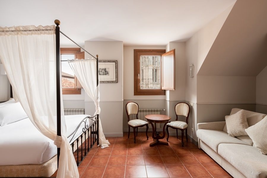 La historia del Hotel Crisol Mesón del Cid no es reciente. Se ha ido forjando desde 1961 en la ciudad de Burgos frente a uno de los grandes símbolos de nuestra tierra: La catedral de Burgos. Desde este escenario privilegiado, recibimos a miles de visitantes cada año interesados en comer en Burgos y en conocer los valores de esta ciudad hospitalaria, viva, integradora, de espíritu creativo capaz de transmitir los grandes valores que la definen. Desde entonces, hemos ido sido fieles al carácter familiar y a la defensa de la cocina tradicional y hospitalidad burgalesa. Nuestro hotel, uno delos establecimientos mejor valorados por los clientes a través de Internet, es sinónimo de descanso, confort y atención personalizada, siendo fiel a la tradición hospitalaria de la ciudad de Burgos, que recibe a viajeros de todos los rincones del mundo. También ofrecemos un restaurante en Burgos. La cocina es actual, pero se construye sobre la base de los grandes iconos de la cocina tradicional, siendo una magnífica opción para comer en Burgos.