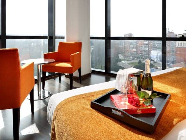 A tan sólo 10 minutos andando del centro de Burgos, en una zona tranquila y bien comunicada, se ubica el emblemático Hotel Crisol Puerta de Burgos. Este hotel de 4 estrellas completamente reformado en 2010, cuenta con cómodos servicios y dispone de 162 habitaciones, entre las que destacan las junior suite, con terrazas privadas e increíbles vistas, y las ejecutivas, muy funcionales y de moderno diseño. Todas las habitaciones están equipadas con Wi-Fi gratuito, caja fuerte y minibar, entre otros servicios.