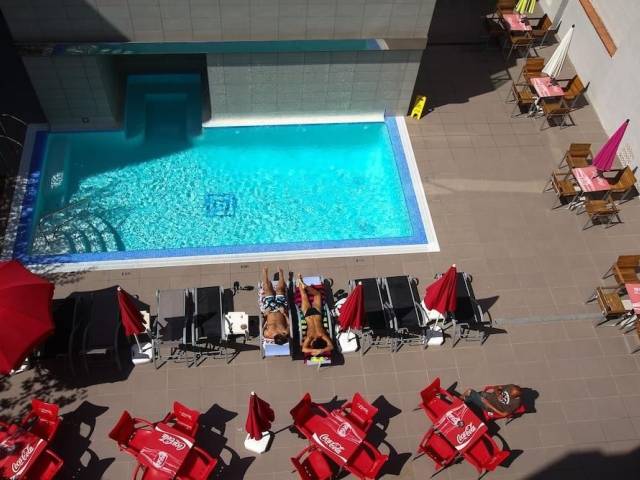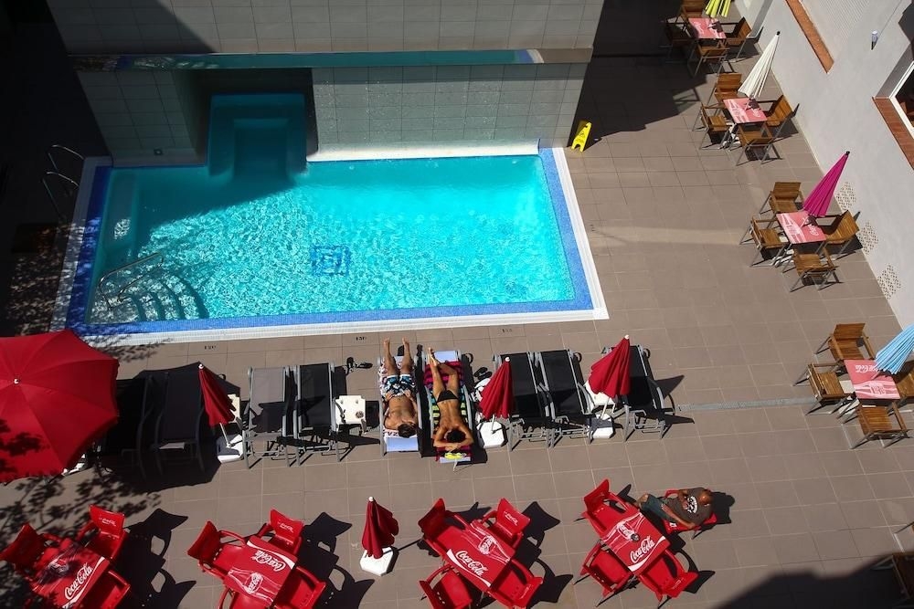 Este bonito establecimiento está cerca de una de las playas más bonitas de Cataluña, en el corazón de la bella localidad de Tossa de Mar, en la fascinante Costa Brava. Este hotel de playa recibe a los visitantes en un interior de diseño elegantes y cálida hospitalidad. Esta maravillosa propiedad ofrece a sus huéspedes un ambiente tranquilo y agradable, con cómodas habitaciones y todas las comodidades modernas. Las amplias habitaciones están muy bien decoradas, ofreciendo un remanso de paz y serenidad para cargar las pilas al final del día. Los huéspedes pueden disfrutar de variados y sabrosos platos en el elegante restaurante durante todo el día o tomar una bebida o un aperitivo en el bar. En los días de calor, los visitantes pueden refrescarse en una de las dos piscinas, una con jacuzzi y cañones de agua, o tomar el sol en la terraza de la piscina, mientras los más pequeños pueden correr y jugar en la zona infantil habilitada.