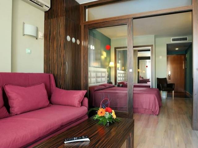 El hotel está situado en una tranquila zona residencial de Lloret de Mar, dentro de Evenia Resort, que cuenta con más de 30.000 m2 de terreno con amplios jardines, piscinas tropicales y áreas para practicar deportes como el tenis, piscinas climatizadas y un gimnasio completo y balneario con circuito termal. El hotel, ideal para familias, dispone de dos tipos de amplias y cómodas habitaciones totalmente equipadas: habitación familiar o apartamento de hasta 33 m2 con sala de estar.