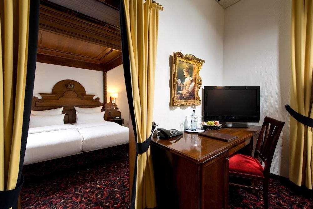 Gracias a la céntrica ubicación del hotel, se puede llegar fácilmente y en pocos minutos a todas las instituciones y atracciones turísticas más importantes de Múnich. Hay una profusión de tiendas y bares, así como un enlace directo a la red de transporte público en las inmediaciones. El aeropuerto de Múnich está a 35 km del hotel. El hotel climatizado fue construido en 1988 y consta de 95 habitaciones repartidas en 7 plantas. Dispone de vestíbulo con recepción 24 horas, ascensor, bar, sala de TV, instalaciones para conferencias y conexión a Internet. Además, el hotel dispone de aparcamiento. Las habitaciones con baño son acogedoras, de estilo victoriano, y están equipadas con cama con dosel, aire acondicionado individual, cafetera Nespresse, secador de pelo, teléfono de línea directa, TV plana vía satélite/por cable, estación de radio iHome compatible con iPhone e iPod, acceso a Internet de banda ancha (30 minutos gratuitos por habitación y día) y caja fuerte. También se incluyen de serie un minibar y una alfombra. Los huéspedes pueden utilizar la sauna del hotel. Todas las mañanas se sirve un delicioso desayuno bufé americano. Tome el S1 o el S8 o el autobús del aeropuerto Lufthansas hasta la estación central o Hauptbahnhof. Tome la salida Arnulfstraže/Dachauer Straže y gire hacia Dachauer Straže. Después de 150 m llegue al hotel a mano izquierda.Otra información del hotel : Año de construcción : 1988, Número de plantas (edificio principal) : 7, Número total de habitaciones : 86, Habitaciones individuales : 21, Habitaciones dobles : 59, Suites : 6, Habitaciones comunicadas, NO Habitaciones comunicadasOtros servicios: Accesible en silla de ruedas, NO Accesible en silla de ruedas, Baño adaptado a minusválidos, NO Baño adaptado a minusválidos, Habitaciones de fumadores, SÍ Habitaciones de fumadores, Cama doble, Carta de almohadas, Baño, Ducha, Toma de corriente de 220 V, Espejo de maquillaje, Artículos de aseo, Suelo de moqueta, Wi-fi, Caja fuerte, Calefacción regulable individualmente, Aire acondicionado regulable individualmente, TV por cable, Teléfono de línea directa, Películas de pago, Radio, Reloj despertador, Escritorio, Servicio de despertador, Menaje para preparar té y café, Detector de humos, Aire acondicionado en zonas comunes, Recepción 24 horas, Caja fuerte en el hotel, Ascensor, Quiosco de periódicos, Cobertura para teléfonos móviles, Internet por cable, Hora de llegada 14.00 - 23.59, Servicio de habitaciones00 - 23:59, Servicio de habitaciones, Servicio de lavandería, Guarda bicicletas, Servicio de alquiler de bicicletas, SÍ Aparcamiento, NO Garaje, Hora de salida 12:00 - 00:00, Aparcamiento vigilado, Personal multilingüe, Prensa, Seguridad 24 horas, Se admiten animales pequeños (menos de 5 kg), NO Se admiten animales pequeños (menos de 5 kg), Se admiten animales grandes (más de 5 kg), NO Se admiten animales grandes (más de 5 kg), Bar, Zona para no fumadores, Aire acondicionado en el restaurante, Sauna