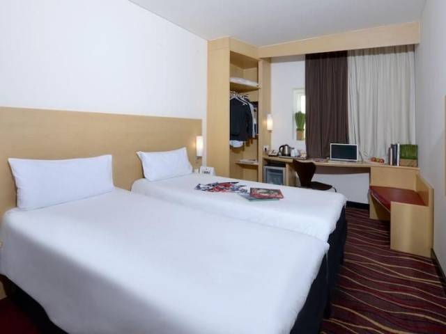 Descripción: Ubicación del establecimiento Si te alojas en Ibis Seef Manama (Opening February 2015), en Manama, estarás a pocos minutos de Dana Mall y City Center Mall. Este establecimiento se encuentra cerca de Bahrain Mall y de Seef Mall. Habitaciones Te sentirás como en tu propia casa en una de las 304 habitaciones con aire acondicionado y televisor LCD. Tendrás conexión a Internet wifi gratis para mantenerte conectado. Los baños disponen de ducha y secador de pelo. Las comodidades incluyen caja fuerte, escritorio y la posibilidad de solicitar cunas o camas para niños. Instalaciones recreativas y de spa Aprovecha las instalaciones recreativas, que incluyen piscina descubierta y gimnasio. Para comer Tienes un restaurante a tu disposición para comer algo en Ibis Seef Manama (Opening February 2015). Los desayunos bufé están disponibles por un suplemento. Negocios, otros servicios Tendrás centro de negocios, check-out rápido y servicio de recepción 24 horas a tu disposición. Este establecimiento dispone de 5 salas de reuniones disponibles para eventos. Se ofrece servicio de transporte al aeropuerto (ida y vuelta) gratuito. Información de la habitación: Tasas e Impuestos Obligatorios A menos que se indique lo contrario, los cargos que figuran a continuación no están incluidos en el precio total de la habitación. Si no están incluidos en el precio total de la habitación, serán cobrados por el establecimiento en el momento del check-in o del check-out. Los cargos pueden variar, por ejemplo, en función de la duración de la estancia o de la habitación reservada. Este establecimiento nos ha informado de que le cobrará lo siguiente: Se cobrará un 5 por ciento de impuestos municipales/locales Hemos incluido todos los cargos que nos ha proporcionado la propiedad. No obstante, los cargos pueden variar, por ejemplo, en función de la duración de la estancia o de la habitación que reserve. Política del hotel: Es necesario presentar un documento de identidad con fotografía al hacer el registro de entrada. El cargo se realiza en la tarjeta de crédito en el momento de la reserva. No se garantiza el tipo de cama ni las preferencias de los fumadores.Su reserva se paga por adelantado y está garantizada para llegadas tardías. El cargo total incluye todos los gastos e impuestos de la habitación, así como las tasas de acceso y reserva. Cualquier cargo incidental, como aparcamiento, llamadas telefónicas y servicio de habitaciones, se gestionará directamente entre usted y el establecimiento. Instrucciones para el registro de entrada: Pueden aplicarse cargos por persona extra que varían en función de la política del hotel. Se requiere un documento de identidad con fotografía emitido por el gobierno y una tarjeta de crédito o un depósito en efectivo en el momento del registro de entrada para cubrir los gastos adicionales. Las peticiones especiales están sujetas a disponibilidad en el momento del registro de entrada y pueden conllevar cargos adicionales. Las peticiones especiales no se pueden garantizar. Información sobre el establecimiento: La hora de entrada comienza a las 12:00 La hora de salida es a las 12:00