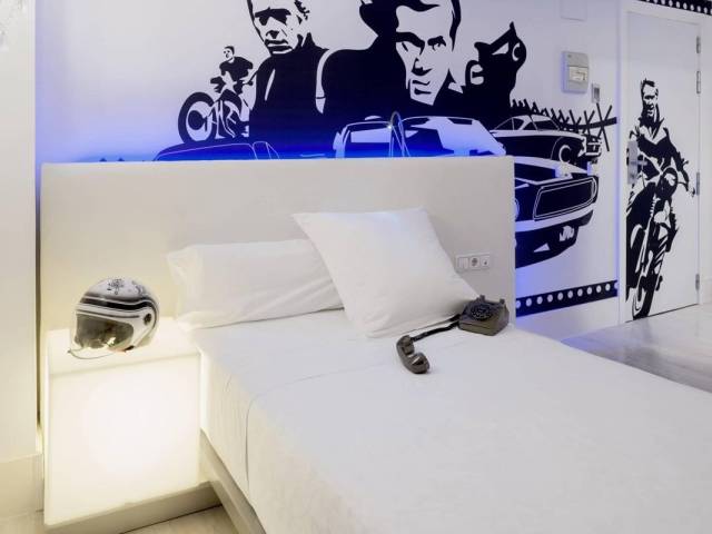 Disfruta en tu habitación de nuestro canal de cine gratuito, con ciclos temáticos y un canal interno de cortos cinematográficos. La TV interactiva incluye radio y prensa diaria. Habitación luminosa y moderna, decorada con murales y grafitis relacionados con películas conocidas.