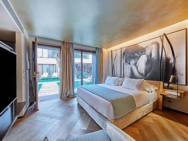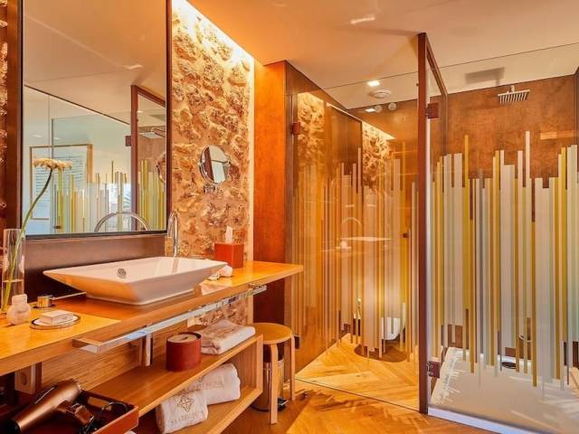 Ubicado en la localidad de Campos, al sureste de Mallorca y a tan solo 8 kilómetros de la playa de Es Trenc y de las salineras de Mallorca, se encuentra Sa Creu Nova ArtHotelandSPA, un espectacular hotel de interior de 5 estrellas sólo para adultos.Abierto todo el año, Sa Creu Nova cuenta con dieciséis habitaciones y un apartamento en las que el diseño distintivo y la calidad de sus materiales, además de la atención al detalle, dotan al hotel de un aire exclusivo. Orientadas a la búsqueda del auténtico descanso y del relax, todas las unidades están equipadas con todo lo imprescindible para que su estancia sea aún más placentera: cafetera, minibar, caja fuerte, aire acondicionado y TV de pantalla plana en gran formato, además de amenities de calidad exclusiva.Destacar que Sa Creu Nova cuenta con dos restaurantes únicos en su concepto. Además, también cuenta con un moderno SPA, el mejor complemento para relajarse y vivir una experiencia única Art Hotel and SPA Sa Creu Nova. De uso exclusivo para sus clientes, con un seductor circuito termal, baño turco, ducha de sensaciones y jets lumbares, entre algunas de sus maravillas. Disfrute también de su gimnasio y zona de fitness con vistas al jardín, para mantenerse activo durante sus vacaciones.Sa Creu Nova dispone de recepción las 24 horas, servicio de consejería, alquiler de coches, entre otros servicios exclusivos.