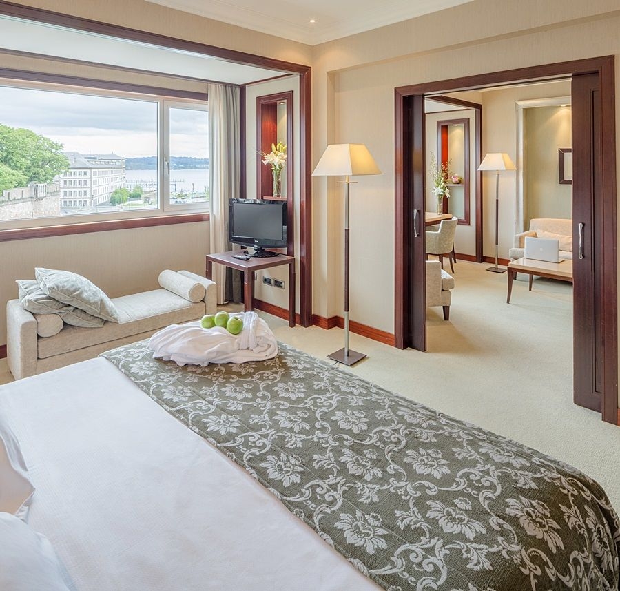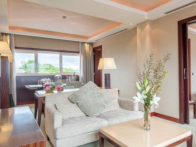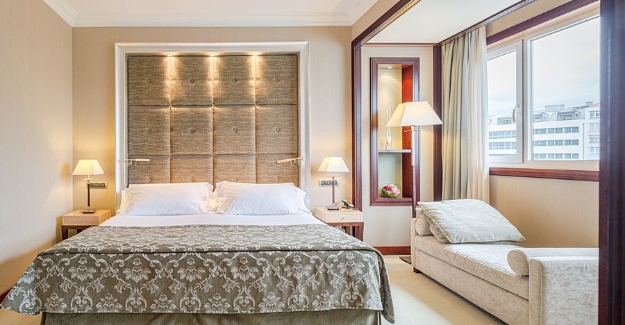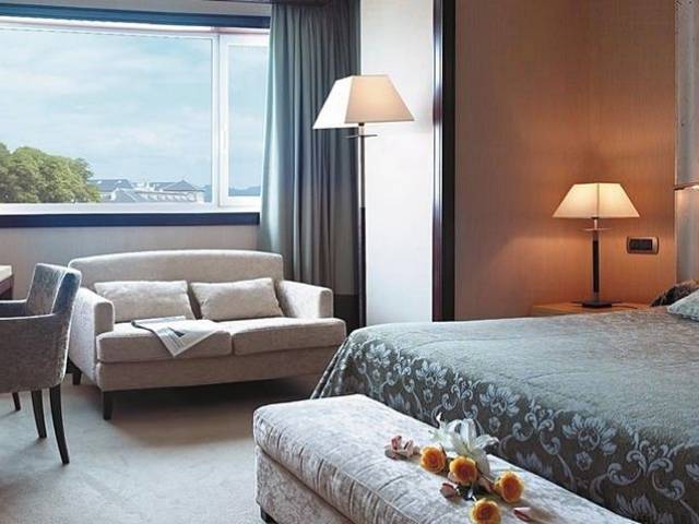 Lujoso hotel de cinco estrellas en el centro de A Coruña. Es un exclusivo hotel situado en pleno centro de A Coruña. Desde sus habitaciones, podrá disfrutar de vistas sobre el mar. Además, todas las habitaciones y suites cuentan con bañera hidromasaje. Posee, una completa zona deportiva, en la que podrá disfrutar de sus 3 piscinas climatizadas al aire libre. En su área wellness podrá practicar deportes como pádel o tenis. Y en el restaurante, el Novo, podrá disfrutar de una exquisita oferta gastronómica. Es un hotel ideal para todo tipo de turistas que quieran disfrutar del único 5 estrellas de A Coruña. Cuenta con amplios salones sociales, con capacidad para hasta 1.400 personas. Y todo, en un enclave privilegiado. Junto al Puerto Deportivo y la zona de playas, a 5 min. caminando de la zona comercial y su casco histórico, y rodeado de una amplia oferta gastronómica y de ocio.