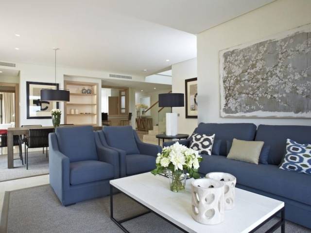 Las Terrazas de Abama son apartamentos de lujo en el Tenerife más exclusivo. Con uno, dos o tres dormitorios cada uno y terrazas abiertas desde los 28 hasta los 123 m2, los apartamentos ofrecen vistas espectaculares al océano, a los jardines subtropicales del resort y al exuberante campo de golf, uno de los mejores de Europa. Nuestros áticos dúplex en alquiler son el paradigma de la elegancia. Con tres dormitorios, cuentan con 123 m2 de terraza abierta en la planta superior, equipadas con una barbacoa y un jacuzzi desde el que disfrutar de la panorámica.  Los modernos interiores étnicos están diseñados para mezclarse perfectamente en el entorno natural.