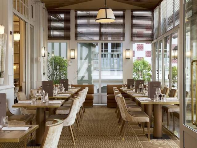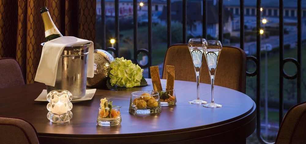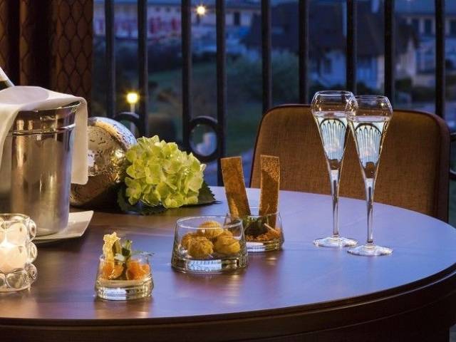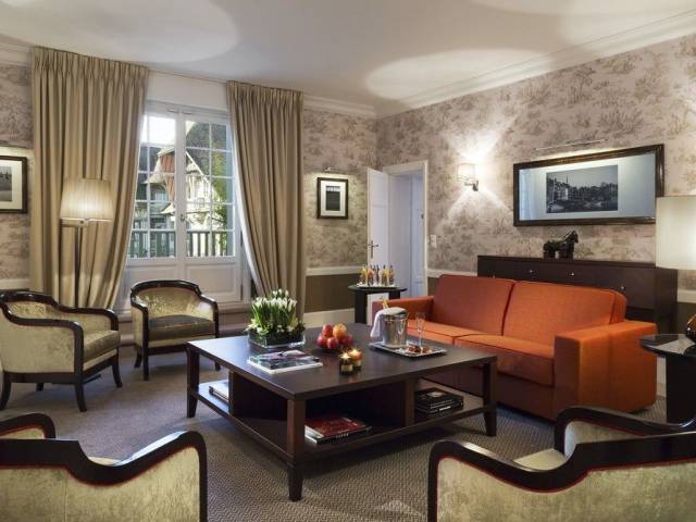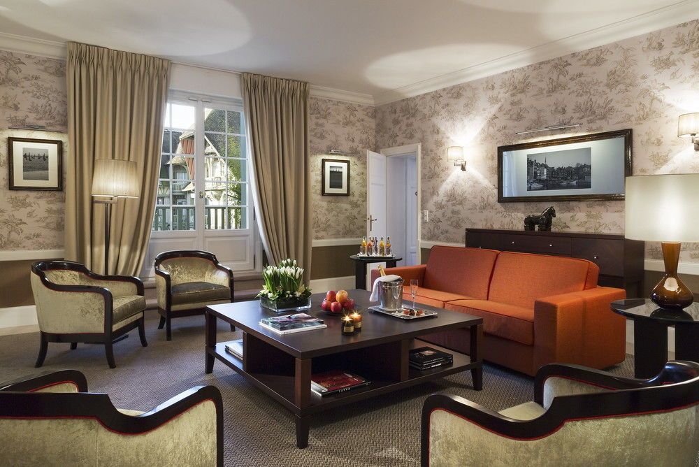 El hotel está situado a solo 2 horas de París y disfruta de una tremenda ubicación con vistas al mar, bordeando la exuberante campiña normanda. Está directamente conectado con el más prestigioso casino francés, el 'Casino Barriere de Deauville', muy cerca de las más famosas tiendas francesas de diseño. La playa de Deauville está a unos 200 m, mientras que la famosa ciudad de pintores de Honfleur dista 15 km y las playas del desembarco del día D y el Monte Saint-Michel se hallan a 1 hora.Este hotel es uno de los mejores ejemplos arquitectónicos de una casa solariega anglonormanda de la región, con sus torretas de campanarios, tejados de pizarra marrón y maderas de suaves tonos verdes. Una abundancia de servicios proporciona un lujo añadido para una estancia confortable. Este maravilloso establecimiento es ideal para largos fines de semana y escapadas cortas. Cuenta con un afamado restaurante y su experiencia data de 1912.Las habitaciones disponen de un cuarto de baño con albornoz y secador de pelo, así como de teléfono de línea directa, TV vía satélite/por cable, radio, conexión a Internet, minibar y caja fuerte. También tiene la posibilidad de reservar habitaciones para no fumadores.El hotel pone a su disposición una piscina cubierta (si hace buen tiempo se puede abrir el techo), una sauna, un solárium, un baño de vapor y un gimnasio. Tendrá la posibilidad de jugar al minigolf o al tenis en el club vecino. También se ofrecen servicio de masajes. Por la noche es hora de disfrutar de la vida nocturna y de la fascinación del casino del hotel. El casino de Deauville es un elegante edificio con columnas, situado de cara al mar, mientras que Trouville cuenta con un estilo a lo Nueva Orleans. Ambos ofrecen entretenimiento sin fin en un entorno único y suntuoso. Entre ambas localidades gemelas ofrecen un total de 500 máquinas tragaperras, así como todo tipo de mesas de juego y espectáculos.