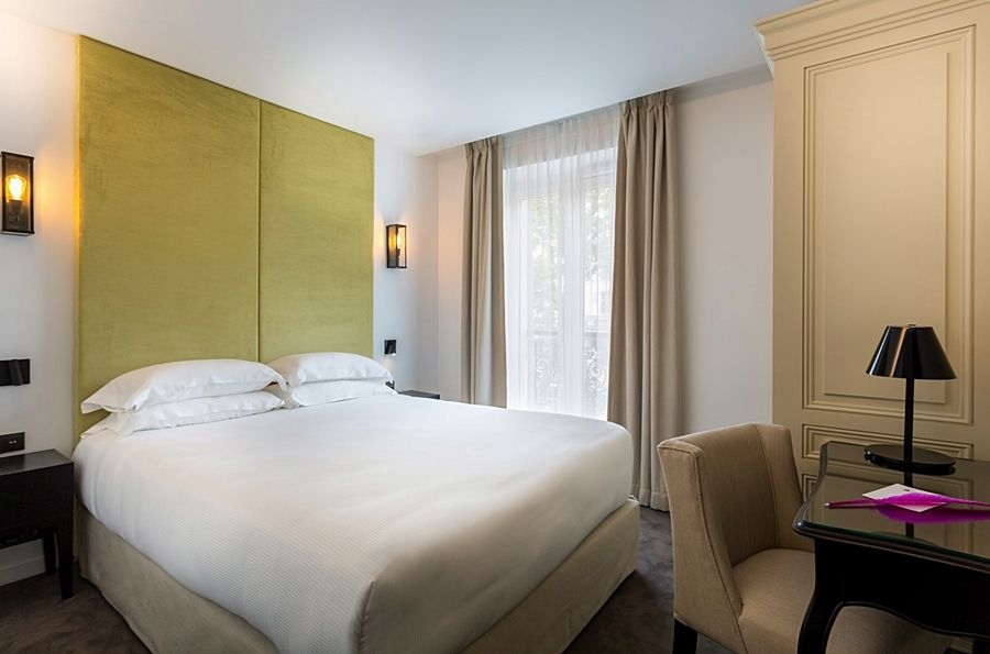 Una decoración que combina el pasado y la modernidad frente a la Torre Eiffel. La condesa tomó su residencia en un edificio Haussmann en la esquina de la avenida de Tourville y la avenida Duquesne. Este personaje se presenta en una decoración que es una mezcla de piezas clásicas y toques modernos con el tema del estilo de vida francés. Encontramos en el establecimiento un ambiente revisado y retorcido del siglo XVIII que es el resultado de una estrecha colaboración entre la firma de arquitectura A3 + y los propietarios apasionados. Cada una de las 40 habitaciones, decoradas en tonos beige, mandarino, verde pistacho o azul cielo, goza de vistas excepcionales de los monumentos de París. Todos tienen una vista lateral o frente a la Torre Eiffel. Los huéspedes de La Comtesse disfrutarán de un magnífico panorama desde cada rincón del hotel. En el sótano, una zona de bienestar que consta de un hammam y un gimnasio traerá todas las comodidades tan apreciadas después de un día en París.