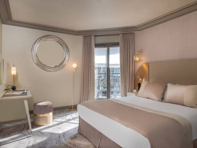 Este hotel de alta costura se encuentra en el corazón de la capital de la moda, a sólo unos pasos de la Torre Eiffel y los Campos Elíseos.