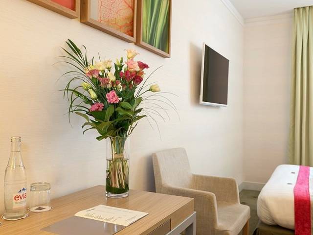 El hotel Marceau Bastille ha sido renovado recientemente. Se encuentra a dos pasos de la Bastilla y de la estación de Lyon, cerca del barrio histórico del Marais, de Bercy y del Jardín de Plantas. Este hotel, con su estilo de diseño en pleno París y un confort contemporáneo armoniosamente combinado a la atmósfera artística de un amplio espacio Galería, ofrece 55 habitaciones con estilos "urbano" o "ecológico". Durante su estancia va a poder gozar de nuestro salón-bar en la Galería de arte o de nuestro patio con sus bonitos árboles. También puede aprovechar para relajarse en la sala de fitness o regálese un momento de bienestar gracias a nuestra selección de cuidados. Todo un universo elegante y tranquilo en pleno corazón de París.