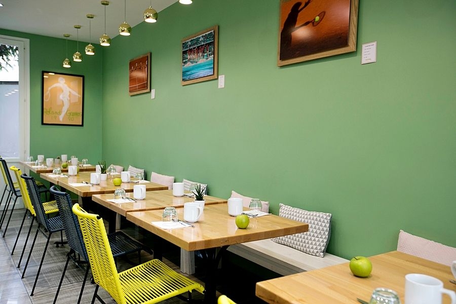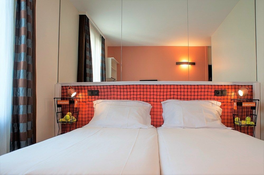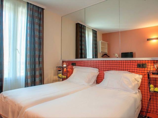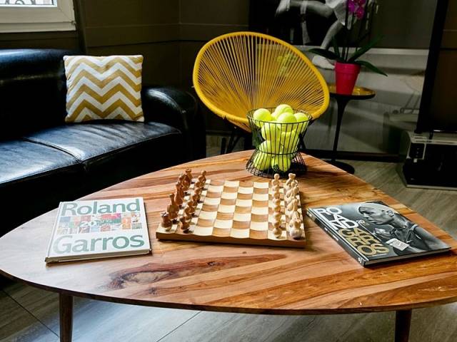 Cada habitación ha sido cuidadosamente decorada en tonos de arcilla que revelan detalles sorprendentes, tales como redes de tenis, cestas, hierba, auténticas bolas de Roland Garros...