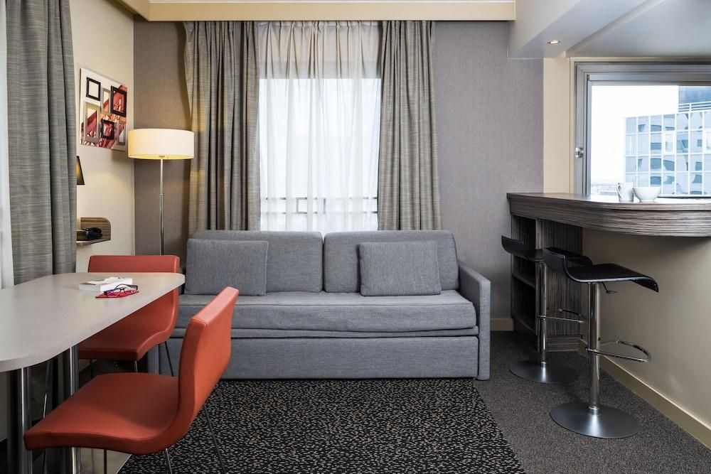 Adagio La Défense Esplanade está situada en el corazón del distrito financiero de La Défense, cerca de la CNIT y del Grande-Arche. Tiene 99 estudios y apartamentos totalmente equipados, con 2 estudios para PRM. Gran centro comercial y todos los servicios a poca distancia y aparcamiento público de pago en las cercanías. Perfecto para estancias de negocios, el Aparthotel se encuentra a 10 minutos de los Campos Elíseos en metro.