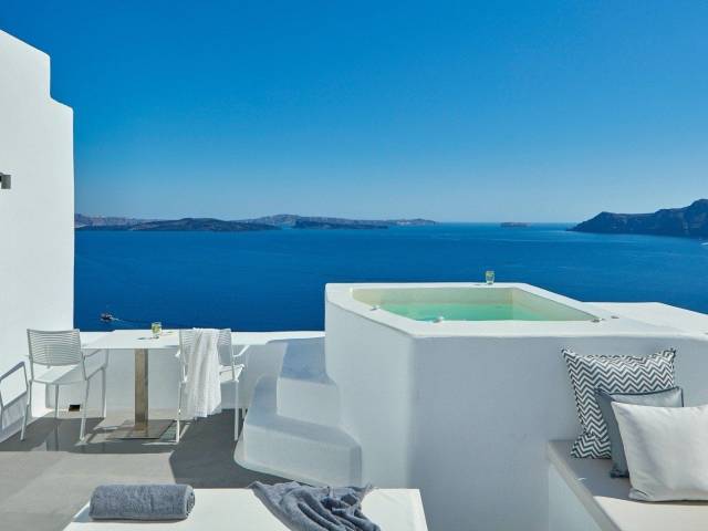 Situada en el punto más al oeste de la isla, Villa Katikies brota como una auténtica joya en medio de las mejores villas de Oia Santorini. Estratégicamente ubicada en un entorno natural único junto a su lujoso hotel asociado Katikies, uno de los mejores hoteles del mundo, villa Katikies está considerada como una de las villas más favorables en Oia, Santorini, debido a su increíble entorno, servicios a medida y Increíble vista al mar. Al entrar en el mundo exclusivo y muy privado de Villa Katikies, uno puede experimentar lo mejor de ambos mundos, el lujo y la gracia auténtica, ambos coronados por el epítome estético del romance. La espléndida piscina bajo toldos blancos con brisa fluida y terrazas para tomar el sol ofrece unas excelentes vistas de la Caldera. Los azules claros y los blancos de la villa arman de nuevo a su herencia de la isla griega pura, junto con toques rústicos como urnas de olivo y árboles.