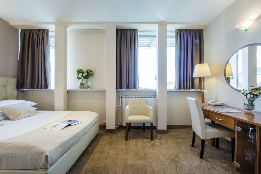 Hotel Central está situado en el centro de la ciudad, enfrente de la estación de trenes y muy cerca de la terminal de autobuses al aeropuerto de Zagreb. El hotel es ideal para el alojamiento de los viajeros de negocios, los huéspedes transitorios y turista de paso a través de Zagreb. En los alrededores del hotel, caminando por el Parque Zrinievac, encontrará museos, galerías, centros comerciales y lugares de interés turístico de la ciudad medieval.Tasa de ocupación 7 KN por persona y noche, pago directo en el hotel.