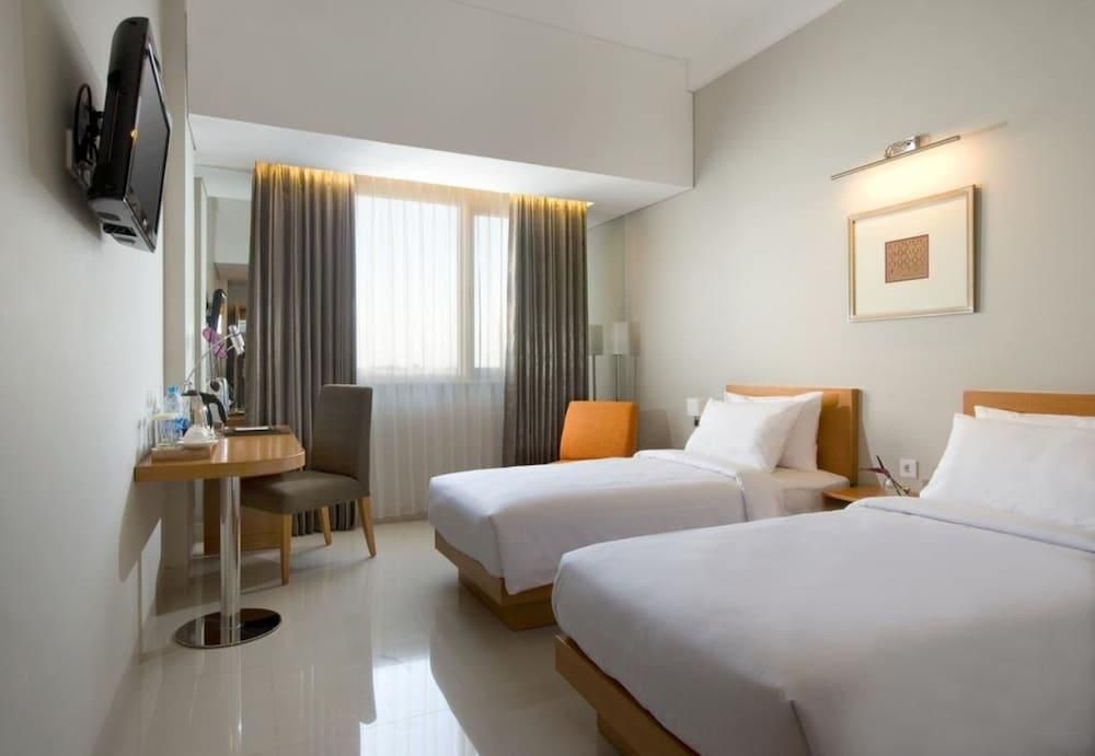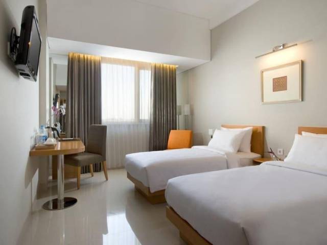 El Hotel Santika Jemursari se encuentra en Surabaya, a 10 minutos en coche de Rungkut Industri Estate. Cuenta con un restaurante y habitaciones con aire acondicionado y TV de pantalla plana por cable. Hay conexión Wi-Fi y aparcamiento gratuitos. Las elegantes habitaciones del Santika Jemursari cuentan con muebles modernos y grandes ventanas que ofrecen mucha luz natural. Todas están equipadas con escritorio y baño privado con ducha de agua caliente. El restaurante Sekarwangi sirve una excelente selección de platos locales y occidentales. El servicio de habitaciones también está disponible bajo petición. Con una recepción abierta las 24 horas, el hotel puede organizar servicios de reuniones y banquetes. Se pueden organizar excursiones de un día y visitas turísticas en el mostrador de información turística. El Santika Jemursari Hotel se encuentra a 20 minutos en coche del zoológico de Surabaya y del aeropuerto internacional de Juana. La Gran Mezquita y la Mezquita Cheng Ho se encuentran a 30 minutos en coche. Tenggilis Mejoyo es una gran opción para los viajeros interesados en calles limpias, paseos por la ciudad y comida local.