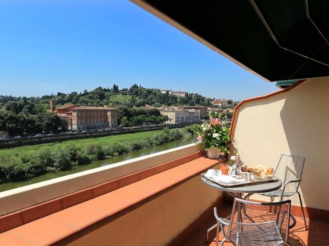 Este hotel está en el mismo centro de Florencia, en la ribera del río Arno y frente a la Piazzale Michelangelo. Desde él, los huéspedes podrán llegar a pie hasta los principales monumentos de la ciudad, desde el asombroso Duomo y el Palacio Vecchio hasta los museos Uffizi y Bargello.Las confortables habitaciones combinan una elegancia atemporal con comodidades modernas como el wifi gratis. El hotel ha alojado a diversas personalidades y dignatarios como François Mitterrand o Marcello Mastroianni. Los viajeros podrán deleitarse con las especialidades toscanas servidas en el restaurante y, para empezar el día, cargar energías con el delicioso bufet del desayuno. Para mayor comodidad, el hotel cuenta con su propio garaje privado y es fácil llegar hasta él en coche. Ya sea en viaje de negocios o de placer, su excelente ubicación y servicio lo convierten en la elección ideal en Florencia.