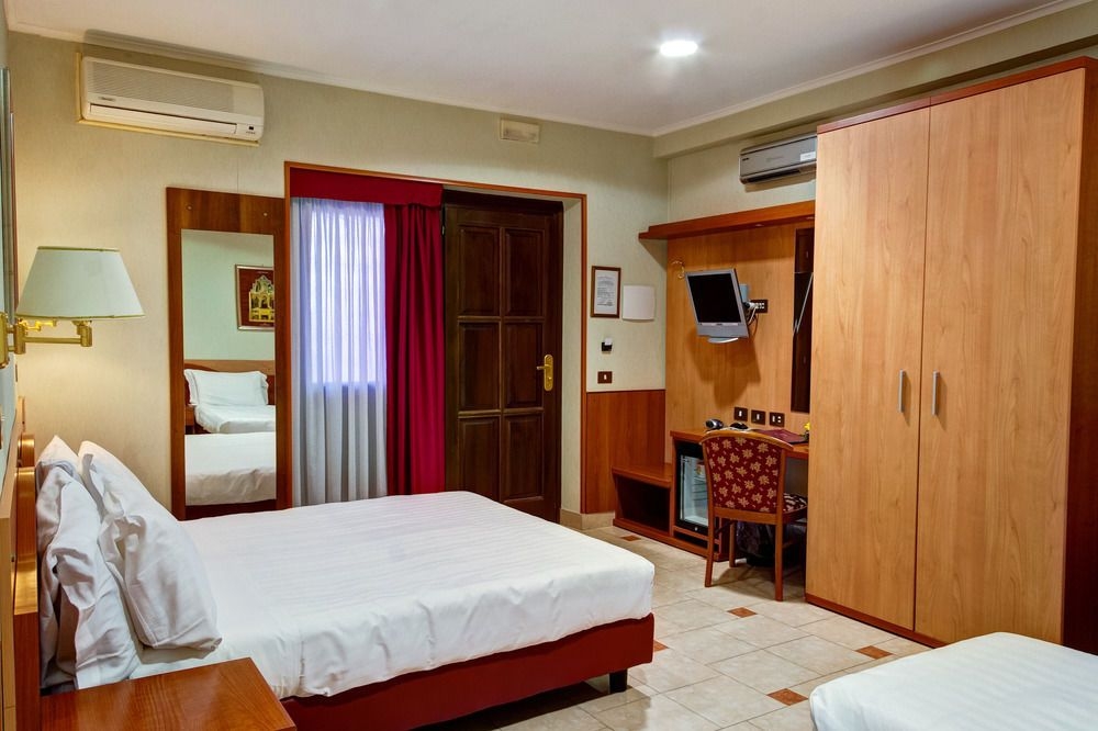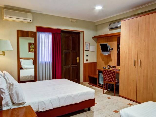 Alojándote en Hotel Riviera estarás en pleno corazón de Fiumicino y en las inmediaciones de Ruinas romanas de Ostia Antica y Ostia Antica Alojándote en Hotel Riviera estarás en pleno corazón de Fiumicino y en las inmediaciones de Ruinas romanas de Ostia Antica y Ostia Antica. Este hotel se encuentra a pocos kilómetros de Castillo de Julio II y de Parco Leonardo.Habitaciones Te sentirás como en tu propia casa en una de las 27 habitaciones con aire acondicionado, minibar (con algunos artículos gratuitos) y minibar. La conexión a Internet wifi gratis te permite comunicarte con los tuyos, y en tus ratos libres podrás entretenerte con el televisor LCD de 32 pulgadas con canales por satélite. El baño privado con ducha y bañera combinadas está provisto de cabezal de ducha tipo lluvia y artículos de higiene personal gratuitos. Las comodidades incluyen caja fuerte, escritorio y teléfono. Con bicicletas de alquiler y muchas otras instalaciones recreativas a tu disposición, no te quedará ni un minuto libre. Tienes también una terraza donde sentarte a contemplar el paisaje. Otros servicios de este hotel incluyen conexión a Internet wifi gratis, televisor en el vestíbulo y asistencia turística y para la compra de entradas. Si quieres pasar un día de compras, aprovecha el servicio de transporte disponible (de pago).Para comer Tienes una cafetería a tu disposición para comer algo, pero si lo prefieres, puedes llamar al servicio de habitaciones las 24 horas de este hotel. Disfruta de un cóctel gratuito de bienvenida todos los días, donde podrás conocer a otros huéspedes mientras tomas un bocado. Apaga la sed con tu bebida favorita en el bar o lounge.Servicios de negocios y otros Tendrás servicio de limusina o coche con chófer, una zona de ordenadores y check-in rápido a tu disposición. Pagando un pequeño suplemento podrás aprovechar prestaciones como servicio de transporte al aeropuerto (ida y vuelta) a horas precisas y servicio de transporte al punto de embarque de cruceros.