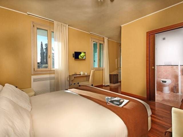 A sólo unos pasos de la orilla del lago de Garda, el Atelier Hotel es un lugar moderno y elegante para alojarse en el corazón de Gardone Riviera. Además de ser una ubicación ideal para relajarse en la playa, el hotel también está cerca de algunos de los lugares de interés más famosos de la zona, como el Vittoriale degli Italiani y la Catedral de Saló. El hotel se encuentra junto a la estación de autobuses de Gardone Riviera, permitiendo a los huéspedes explorar la región durante su estancia aquí. Si prefiere aprovechar su ubicación junto al lago, encontrará buena selección de deportes acuáticos, y la oportunidad de relajarse mientras toma el sol en la bahía. El bar del hotel, el Fragole y Champagne tiene un ambiente moderno y elegante. Sirve un desayuno continental cada mañana, además de una selección de bebidas y comidas ligeras durante el día y la noche que se pueden disfrutar en su precioso interior. Si prefiere disfrutar comiendo y bebiendo al aire libre, la terraza en la azotea del hotel también dispone de servicio de bar. Desde aquí puede disfrutar de unas vistas fenomenales del lago y su costa, un espectáculo mágico, tanto de día como después de la puesta de sol. Cada un