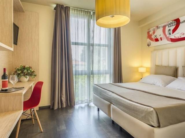 El Hotel San Marco se encuentra en Lucca, en las inmediaciones de las murallas históricas de la ciudad desde 1992, en 2010 el hotel ha sido renovado en un espÃritu que combina el respeto por la tradición y la innovación profunda. El nuevo mobiliario en el vestÃbulo, los colores y la luminosidad de las habitaciones, la amabilidad y profesionalidad del personal harán que su estancia sea inolvidable. Las habitaciones del Hotel San Marco son cómodas, hipoalergénico y equipadas con todas las comodidades: aire acondicionado, secador de pelo, caja fuerte, minibar, TV, conexión para módem. Cada habitación es única, ya que está dedicado a un famoso personaje de la cultura y la historia de Lucca. Están disponibles bajo petición habitaciones para fumadores y habitaciones adaptadas para personas con discapacidad.