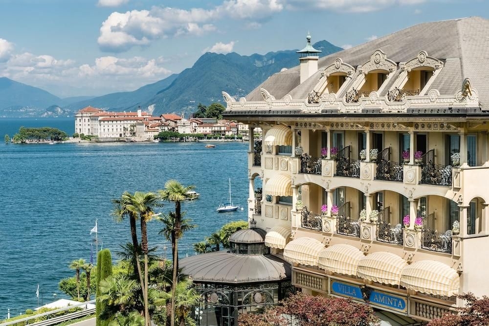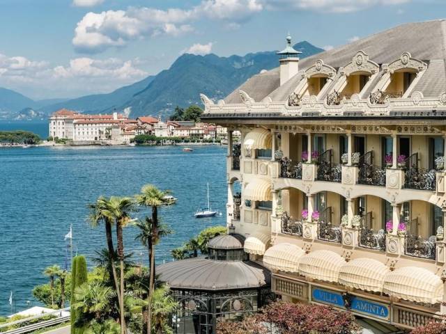 En las orillas del lago Maggiore, Villa & Palazzo Aminta Hotel, Beauty & Spa es un complejo de lujo de 5 estrellas donde podrá regenerar su cuerpo y alma al revelar emociones auténticas en uno de los lugares más exclusivos del mundo. La villa, que se encuentra en la ciudad de Stresa, con vistas al encantador golfo de Borromeo y justo en frente de las tres islas Borromeo, es el único miembro del consorcio The Leading Hotels of the World (Mejores Hoteles del Mundo) en toda la zona del Lago Maggiore. Todas las 72 habitaciones y suites están divididas en cuatro plantas, están decoradas y personalizadas con frescos hechos a mano, muebles preciosos, baño de mármol con jacuzzi, simple o doble lavabo, servicio de habitaciones 24 horas y balcón o terraza con vistas al lago o al magnífico y exuberante jardín.