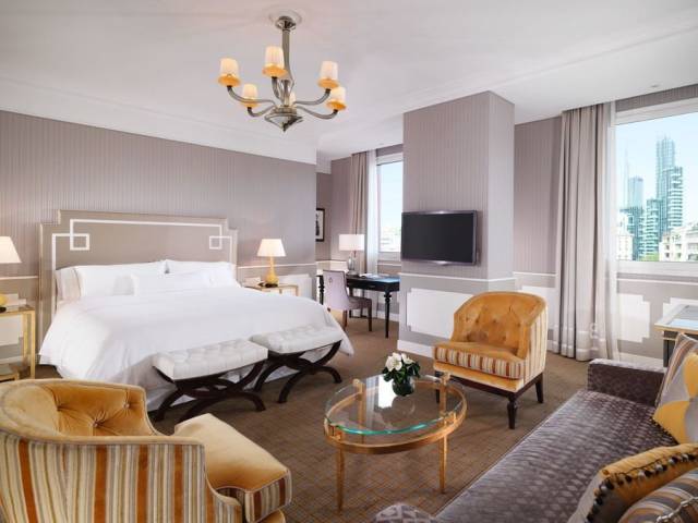 Este exclusivo hotel está situado en el corazón de Milán, en la misma Piazza della Repubblica, a unos pasos de la famosa catedral de Milán y de las principales calles comerciales y de tiendas de la ciudad. En los alrededores hay una gran cantidad de bares dignos de visitar, así como restaurantes. Enfrente del edificio hay una parada de transporte público.Este elegante y confortable hotel urbano destaca por su moderna fachada de mármol y por su clásica decoración interior. Dispone de un total de 241 elegantes habitaciones repartidas en doce plantas. 197 de las habitaciones son dobles, 28 son individuales y 16 son suites. En el elegante y exclusivo hall de entrada decorado en estilo imperial, podrá encontrar un área de recepción abierta las 24 horas del día, un ascensor y servicio de caja fuerte, de cambio de divisa y de guardarropa. A disposición de los huéspedes hay una cafetería, un piano-bar, una sala de conferencias y un restaurante a la carta climatizado. Los huéspedes tendrán la posibilidad de utilizar la conexión a Internet y el servicio de atención médica, de habitaciones y de lavandería. También hay plazas de aparcamiento.Las confortables y acogedoras habitaciones están decoradas en estilo imperial y con lujosos y nobles materiales. Todas cuentan con baño propio y con secador de pelo. También están dotadas de teléfono de línea directa, TV vía satélite o por cable, radio, conexión a Internet, minibar, aire acondicionado, calefacción central y caja fuerte de alquiler.En la ciudad de Milán podrá encontrar una gran cantidad de lugares de ocio y entretenimiento o donde podrá practicar y realizar deporte. Además, el hotel pone a disposición de los huéspedes un gimnasio y un baño turco. Los huéspedes tienen la posibilidad de utilizar el servicio de masajes.
