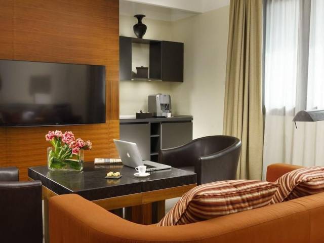 Milan Suite Hotel está estratégicamente ubicado cerca del principal recinto ferial de Milán: Fiera Milano en Rho, Fieramilanocity y del centro de congresos MICO. El hotel también está muy cerca de la carretera principal que conduce a Milán. Milan Suite Hotel es el primer hotel urbano de lujo de estilo asiático en Milán. Dispone de 38 suites junior y 2 suites prestigiosas amplias y confortables de 70 metros cuadrados. El telón de fondo de todo, es conseguir el máximo confort en cada habitación, que incluyen una zona de estar, con cómodos sofás, Mediaset Premium (televisión por cable), conexión WI-FI, máquina de té y café gratuito, cuarto de baño con bañera y ducha, máquina de café espresso y horno microondas bajo petición. *Aparcamiento de pago **** El precio del aparcamiento es de 15,00 euros por noche. A pagar directamente en el hotel.