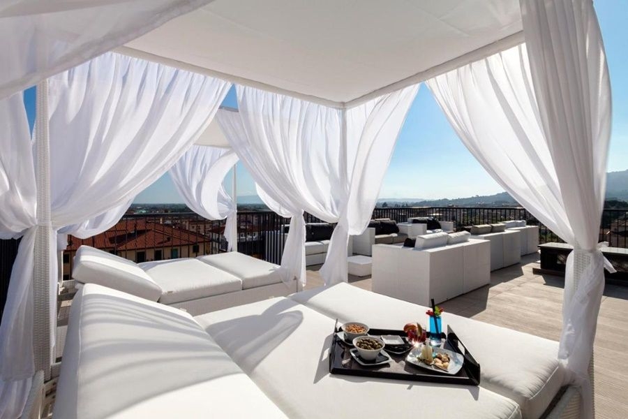 El lujo del Montecatini Palace & Spa Hotel desafía cualquier definición. Aquí no nos conformamos con la elegancia llevada al extremo. Aquí jugamos con contrastes atrevidos. Con blanco puro persiguiendo el negro definitivo. Con la suave piel de los sofás que se superpone al cromado de los complementos de decoración. Lujo elevado a un nuevo estándar.