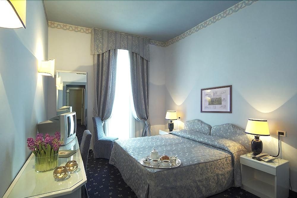Te sentirás como en tu propia casa en cualquiera de las 72 habitaciones con minibar. La conexión a Internet wifi gratis te mantendrá en contacto con los tuyos; también podrás ver tu programa favorito en el televisor con canales por satélite. El cuarto de baño está provisto de ducha y secadores de pelo. Entre las comodidades, se incluyen caja fuerte y escritorio.Prueba deliciosos platos sin moverte de este hotel, que cuenta con un restaurante y ofrece servicio de habitaciones con horario limitado. Apaga la sed con tu bebida favorita en el bar o lounge. Se ofrece un desayuno bufé gratuito todos los días de 08:00 a 10:30.Tendrás un centro de negocios, tintorería y un servicio de recepción las 24 horas a tu disposición. Hay un aparcamiento sin asistencia (de pago) disponible.Si decides alojarte en Adua and Regina di Saba, disfrutarás de una fantástica ubicación en pleno centro de Montecatini Terme, a menos de cinco minutos a pie de Terma Excelsior y Spa Terme di Montecatini. Además, este hotel de 4 estrellas se encuentra a 23,8 km de Arno River y a 0,5 km de Terma Leopoldina.Las distancias se expresan en números redondos. Terma Excelsior: 0,3 km Spa Terme di Montecatini: 0,3 km Terma Leopoldina: 0,4 km Piazza del Popolo: 0,5 km Terma Tettuccio: 0,5 km Funicular de las Termas de Montecatini: 0,8 km Plaza de Giuseppe Giusti: 2,1 km Museo de Arte Contemporáneo y el siglo XX: 3,8 km Centro Storico di Buggiano: 4,4 km Temas Grotta Giusti: 5,4 km Fucecchio Marshes: 8,5 km Porta Fiorentina: 9,5 km Club de golf de Montecatini: 10 km Museo cívico Gipsoteca Libero Andreotti: 10,5 km San Doménico: 10,6 km Aeropuertos más cercanos: Pisa (PSA-Galileo Galilei): 62,4 km Aeropuerto de Peretola (FLR): 43,3 km Aeropuerto recomendado para Adua and Regina di Saba: Pisa (PSA-Galileo Galilei).
