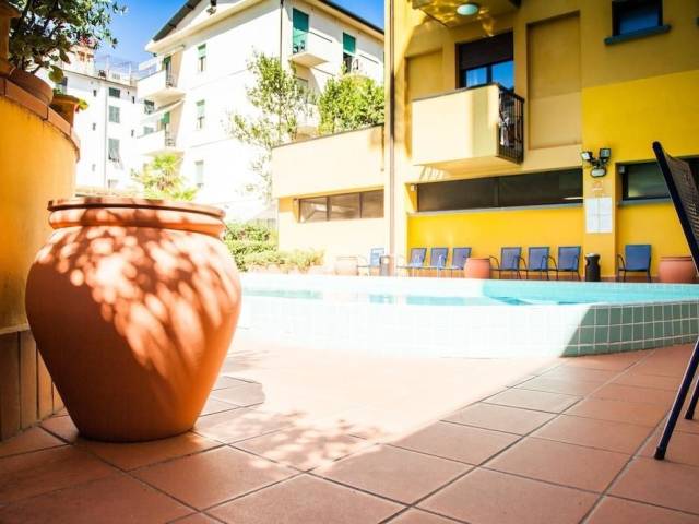 Te sentirás como en tu propia casa en cualquiera de las 66 habitaciones con minibar. La conexión a Internet wifi gratis te mantendrá en contacto con los tuyos; también podrás ver tu programa favorito en el televisor con canales por satélite. Es posible solicitar cunas o camas infantiles gratuitas y camas supletorias.En Royal Palace tienes un restaurante a tu disposición para comer algo. Qué mejor forma de acabar el día que con una bebida en el bar o lounge.Tendrás un servicio de recepción las 24 horas, atención multilingüe y una biblioteca a tu disposición. Pagando un pequeño suplemento podrás aprovechar prestaciones como servicio de transporte al aeropuerto (ida y vuelta) (disponible las 24 horas) y aparcamiento sin asistencia (de pago).Si decides alojarte en Royal Palace de Montecatini Terme, estarás a apenas 5 min a pie de Terma Excelsior y a 5 de Spa Terme di Montecatini. Además, este hotel de 4 estrellas se encuentra a 0,4 km de Terma Leopoldina y a 0,7 km de Funicular de las Termas de Montecatini.Las distancias se expresan en números redondos. Terma Excelsior: 0,4 km Spa Terme di Montecatini: 0,4 km Terma Leopoldina: 0,4 km Piazza del Popolo: 0,6 km Terma Tettuccio: 0,6 km Centro de congresos Montecatini: 0,6 km Funicular de las Termas de Montecatini: 0,7 km Club de tenis La Torretta: 1 km Mini-golf Bosque de los elfos y los duendes: 1,2 km Plaza de Giuseppe Giusti: 2,1 km Museo de Arte Contemporáneo y el siglo XX: 3,9 km Porta Fiorentina: 9,4 km Club de golf de Montecatini: 9,9 km Museo cívico Gipsoteca Libero Andreotti: 10,5 km San Doménico: 11,2 km Aeropuertos más cercanos: Florencia (FLR-Peretola): 43,6 km Pisa (PSA-Galileo Galilei): 63,3 km Aeropuerto recomendado para Royal Palace: Florencia (FLR-Peretola).