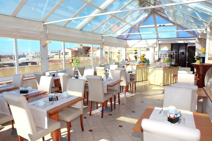 Comience el día en el Exe Domus Aurea, con un desayuno americano tipo bufé en la terraza de la azotea, mientras contempla las espléndidas vistas de las Termas de Diocleciano.