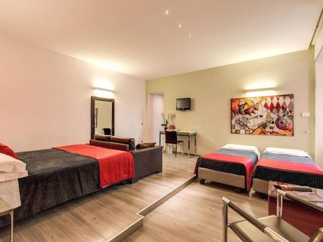 Situado en una calle lateral de la famosa Via Veneto, este lujoso aparthotel goza de una ubicación estratégica para disfrutar de las oportunidades culturales y comerciales de la ciudad. Los lugares más cercanos son la Escalinata Española, la Fontana di Trevi, Villa Borghese y el Coliseo. En las inmediaciones hay restaurantes, bares, pubs y tiendas, mientras que las estaciones de autobús y tren están a unos 17 minutos a pie. El aeropuerto internacional Leonardo da Vinci (Fiumicino) de Roma y el aeropuerto de Ciampino están a unos 30 y 31 km del establecimiento, respectivamente. Las esenciales y modernas habitaciones transmiten un ambiente elegante, relajante y funcional. El desayuno en la acogedora sala de desayunos, así como la amplia oferta de habitaciones y suites bien equipadas del hotel, lo hacen especialmente adecuado para viajes de negocios y vacaciones. Además de un vestíbulo con recepción 24 horas y servicio de salida, este hotel de diseño de 14 habitaciones climatizado y renovado en 2010 dispone de caja fuerte, ascensor y salón de peluquería. Hay servicio de habitaciones y de lavandería y, por un suplemento, los huéspedes que lleguen en coche pueden dejarlo en el aparcamiento o en el garaje del hotel. Las habitaciones presentan una alternativa moderna a un hotel para una estancia en el centro de Roma. Las instalaciones presentan un estilo contemporáneo, cálido y riguroso; mobiliario moderno y versátil, materiales preciosos ricos en confort y un cuidado meticuloso: sencillo y sofisticado, así define el hotel el ambiente acogedor que ofrece. Además de cuarto de baño privado con bañera, ducha y secador de pelo, las habitaciones disponen de TV vía satélite o por cable, conexión a Internet, minibar y cama doble o extragrande. Además, todos los alojamientos disponen de aire acondicionado y calefacción central regulables y caja fuerte. Los huéspedes pueden disfrutar de un relajante baño en la bañera de hidromasaje del hotel. Los aficionados al fairway pueden dirigirse al campo de golf más cercano, Parco di Roma, que está a unos 22 km de la propiedad.Otra información del hotel : Año de construcción : 2010, Número total de habitaciones : 14, Habitaciones individuales : 4, Habitaciones dobles : 10, Junior suites : 3, Habitaciones comunicadas, NO Habitaciones comunicadasOtros servicios: Accesible en silla de ruedas, NO Accesible en silla de ruedas, Baño adaptado a minusválidos, NO Baño adaptado a minusválidos, Cama king-size, Cama doble, Baño, Ducha, Bañera, Caja fuerte, Calefacción central, Calefacción regulable individualmente, Aire acondicionado regulable individualmente, Mini nevera, Aire acondicionado en zonas comunes, Recepción 24 horas, Caja fuerte del hotel, Ascensor, Cobertura para teléfonos móviles, Servicio de habitaciones, Servicio de lavandería, Se admiten animales pequeños (menos de 5 kg), NO Se admiten animales pequeños (menos de 5 kg), Se admiten animales grandes (más de 5 kg), NO Se admiten animales grandes (más de 5 kg), Bañera de hidromasaje, Peluquería