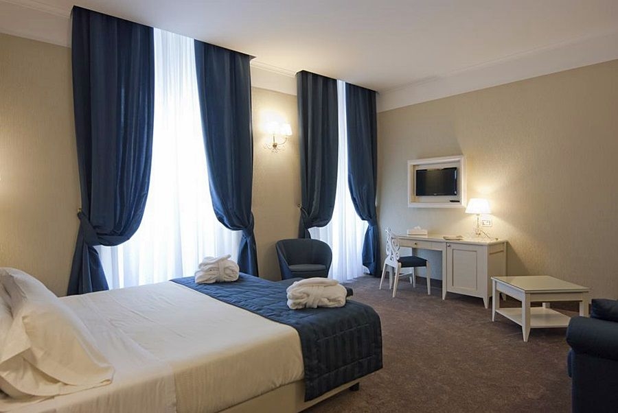 El Hotel dei Borgia se encuentra en el corazón de Roma, en la zona de Via Nazionale, cerca de los principales lugares de interés de la capital, como el Coliseo, la Fuente de Trevi y la Piazza di Spagna. Las habitaciones son elegantes y exclusivas, todo está acabado hasta el más mínimo detalle. Las 80 habitaciones están todas equipadas con las mejores comodidades y servicios. Dentro del hotel también hay una zona de spa y bienestar gratuita para nuestros huéspedes, que desean combinar su estadía con momentos de bienestar y relajación, y un centro de congresos, caracterizado por un ambiente elegante y moderno. El hotel está ubicado dentro del área de tráfico restringido, con restricciones de acceso en horarios fijos.