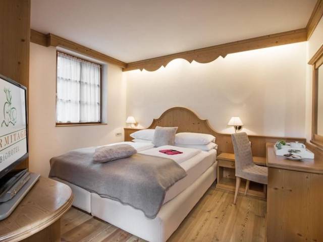 El Bio Hotel Hermitage está situado a 1500 metros del remonte principal frente a los Dolomitas, en una zona tranquila y cerca del centro comercial.. Aire Acondicionado, Jacuzzi, Zona de juegos infantiles, TV por cable/satélite, Secador de Pelo, Bar/Salón, Restaurante, Pistas de tenis, Minibar, Aparcamiento, Spa, Sauna, Servicio de canguro, Se admiten animales domésticos, Hammam, Caja fuerte, Teléfono, Recepción 24 horas, Jardín, Instalaciones accesibles para minusválidos, Masaje, Terraza panorámica, Hípica, Piscina cubierta, Acceso WI-FI a Internet GRATUITO, Albornoz y zapatillas.