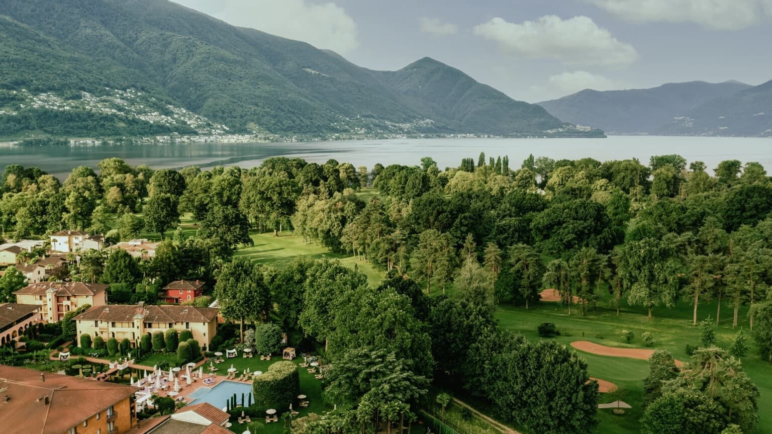 El moderno hotel de estilo mediterráneo está ubicado en un exuberante parque cerca del Lago Maggiore.