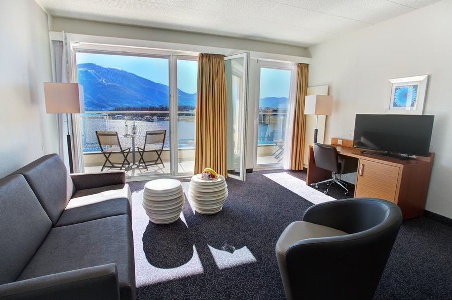 Situado en una posición estratégica, a pocos pasos de la estación y la parte antigua de la ciudad en el hermoso paseo del lago de Locarno, el Hotel La Palma au Lac ofrece a sus huéspedes 68 amplias habitaciones, vistas impresionantes, mucha luz, privacidad y completa relajación. El restaurante New ofrece cocina auténtica y clásica, revisitada con un toque moderno con productos regionales y de temporada. La amplia terraza cubierta también es ideal para aperitivos y comidas rápidas. El estacionamiento de pago está disponible y las conexiones de wifi son gratuitas, mientras que un centro de bienestar y spa mima a los huéspedes con una experiencia inolvidable. Una excelente opción para los viajeros que disfrutan de lagos, montañas y caminatas en un entorno encantador y seguro.