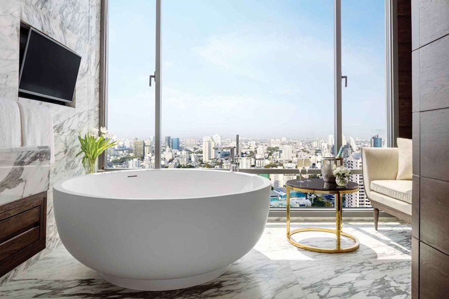 Las 34 lujosas suites del 137 Pillars Suites Bangkok ubicadas en pisos altos, llevan el nombre de ilustres eras reales de la historia de Tailandia y favorecen el escenario perfecto para una escapada de placer. Cada suite, con techos altos y cortinas de seda, cuenta con una mesa de comedor privada, servicio de mayordomo, bar completo con bodega privada, iluminación ambiental de fácil uso, grandes armarios abiertos, hermosos baños en suite con televisión y una bañera circular única. Dormirá en una cama extremadamente cómoda cuya ropa de cama, tejida con 400 hilos, es de algodón suave de estilo egipcio decadente. Sus grandes balcones con mecedoras exclusivas y el amplio diván ofrecen vistas panorámicas a toda la ciudad de Bangkok. Todos los huéspedes de las suites tienen acceso exclusivo las 24 horas a la impresionante piscina en la azotea con espectaculares vistas a la ciudad.