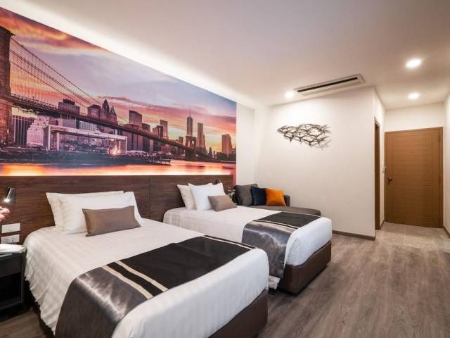 Este hotel urbano de negocios, situado en el centro de Bangkok, ofrece un fácil acceso a los monumentos históricos que han hecho de Tailandia un lugar de renombre internacional. Si le apetece ir de compras, podrá escoger entre los varios centros comerciales de lujo que hay a unos minutos del hotel y que tienen aire acondicionado. La estación de metro de Sukhumvit está a solo 800 m del hotel, mientras que los aeropuertos internacionales de Don Mueang y Suvarnabhumi quedan aproximadamente a 35 km y también son fácilmente accesibles, con el servicio de traslado exprés del aeropuerto son solo 5 minutos.El hotel es ideal para negocios y vacaciones, ya que se puede llegar a él fácilmente y está en el corazón del distrito de negocios de Bangkok. El personal, formado y con experiencia, está a su disposición para presentarle todas las actividades que organiza el hotel y garantizarle, así, una estancia agradable. Este establecimiento, con aire acondicionado, le recibirá en su vestíbulo con servicio de salida, recepción 24 horas y caja fuerte. Además, ofrece peluquería, cafetería, instalaciones para conferencias, conexión a Internet, servicio de habitaciones y de lavandería y aparcamiento. Si después de un día lleno de actividad está demasiado cansado para volver a salir, encontrará todo lo que necesite en el mismo hotel, desde medicinas hasta joyas.Todas las habitaciones disponen de cuarto de baño con ducha, bañera y secador de pelo, cama doble o extra grande, TV vía satélite, conexión a Internet, caja fuerte, minibar/nevera, cafetera/tetera y aire acondicionado regulable.Los amantes del deporte y del bienestar pueden usar el gimnasio y la piscina. Después puede relajarse y refrescarse en la sauna o con un masaje tailandés tradicional o un tratamiento spa profesional.