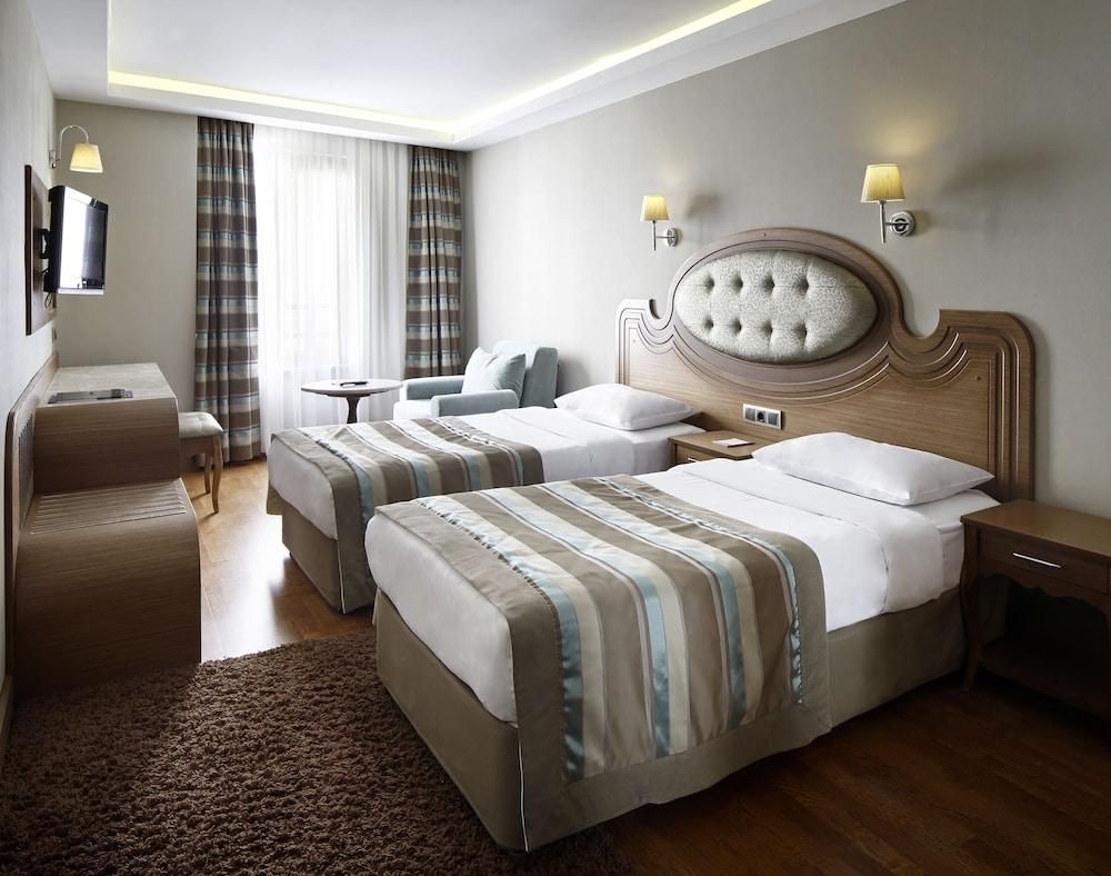 El Grand Hotel Halic goza de una buena ubicación en el céntrico distrito de Beyoglu de Estambul y ofrece vistas a la entrada al mar del Cuerno de Oro. Taksim Sqaure y la Torre de Gálata se encuentran a poca distancia. Cuenta con una piscina cubierta y un spa. El hotel cuenta con habitaciones y suites bien equipadas con zona de estar y TV de pantalla plana con canales vía satélite. Todos los alojamientos tienen calefacción, aire acondicionado y conexión WiFi gratuita. La piscina cubierta del Grand Hotel Halic le invita a relajarse después de un día explorando la ciudad. También hay un hammam tradicional, sauna seca y servicio de masajes. El restaurante Adali, ubicado en la planta superior, sirve mezzes turcos y ofrece vistas únicas a los tejados centenarios de Estambul. Pruebe el anis Raki spirit en el bar con billar mientras escucha música en vivo. Los huéspedes pueden disfrutar de un café turco tradicional en el Rude Bar de Pera.