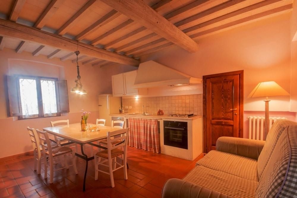 Este encantador hotel está situado en pleno centro de la Toscana, en una ubicación especialmente favorable desde la que los huéspedes podrán llegar fácilmente a Siena (a 60 km), Florencia (a 70 km), Pisa, San Gimignano (a 20 km) y a Volterra (a 20 km). En las inmediaciones del alojamiento los huéspedes encontrarán restaurantes, mientras que el centro de Montaione se halla a unos 7 km. La estación de ferrocarril de Volterra queda a 20 km aproximadamente de este complejo tipo club adecuado para familias.Este hotel histórico, construido originalmente en 1700 y renovado en 2009, es una finca que comprende 12 extraordinarios cortijos inmersos en la maravillosa campiña toscana. El establecimiento ofrece una maravillosa mezcla de tiempos pasados y modernos. Esta casa de campo ofrece un total de 175 habitaciones y entre otras instalaciones dispone de vestíbulo, parque infantil, restaurante, conexión a Internet, servicio de lavandería (de pago) y aparcamiento.Los 12 cortijos han sido restaurados siguiendo tradiciones italianas y estándares modernos, a la vez que prestando una gran atención a la comodidad de los huéspedes y a un estilo sencillo. Los huéspedes podrán elegir entre apartamentos, estudios y villas. Cada unos de los alojamientos está provisto de un cuarto de baño privado con ducha y bañera, así como de cama doble o extra grande y una cocina con nevera, hornillos y cafetera/tetera. El equipamiento de las habitaciones se completa con radio, TV vía satélite y calefacción regulable.Los huéspedes del hotel pueden disfrutar de una cata de vinos, de la granja, un spa con sauna, sala de vapor y tratamientos de hidroterapia y masajes (todas las actividades del spa son de pago). Igualmente, hay una piscina al aire libre con zona de baño infantil, dotada de tumbonas y sombrillas a disposición de los huéspedes. Estos también pueden disfrutar de un partido de tenis (de pago) o explorar los alrededores en bicicleta o a caballo (ambos, de pago).